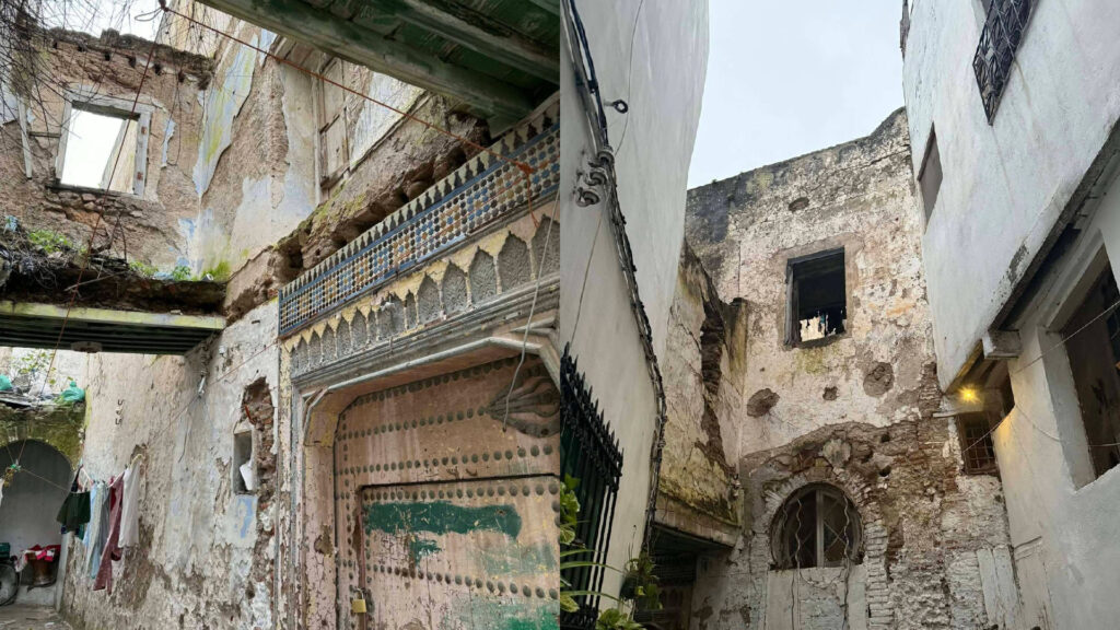 ووفقًا للمعلومات، فإن الأمطار الأخيرة فاقمت من هشاشة المبنى، متسببة في تسرب المياه إلى المنازل المجاورة، مما ينذر بانهيار كامل قد يقع في أي لحظة.