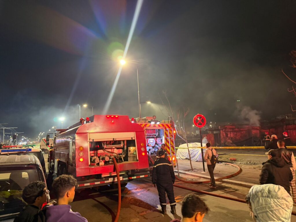 اندلع حريق مهول مساء اليوم الجمعة في مجموعة من محلات إصلاح وتركيب إطارات السيارات بدوار إيزيكي بمقاطعة المنارة في مراكش.
