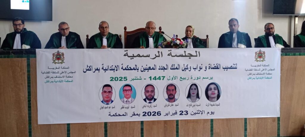 ترأس رئيس المحكمة الابتدائية بمراكش، محمد دحان، حفل التنصيب الرسمي للقضاة الجدد المعينين بالمحكمة، وذلك يوم الاثنين 23 فبراير 2026.