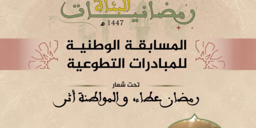 أعلنت جمعية “البناة” عن إطلاق مسابقة وطنية للمبادرات التطوعية تزامناً مع شهر رمضان 1447 هـ، بهدف تعزيز ثقافة العمل التطوعي وتكريس قيم المواطنة الإيجابية، خاصة في أوساط الشباب.