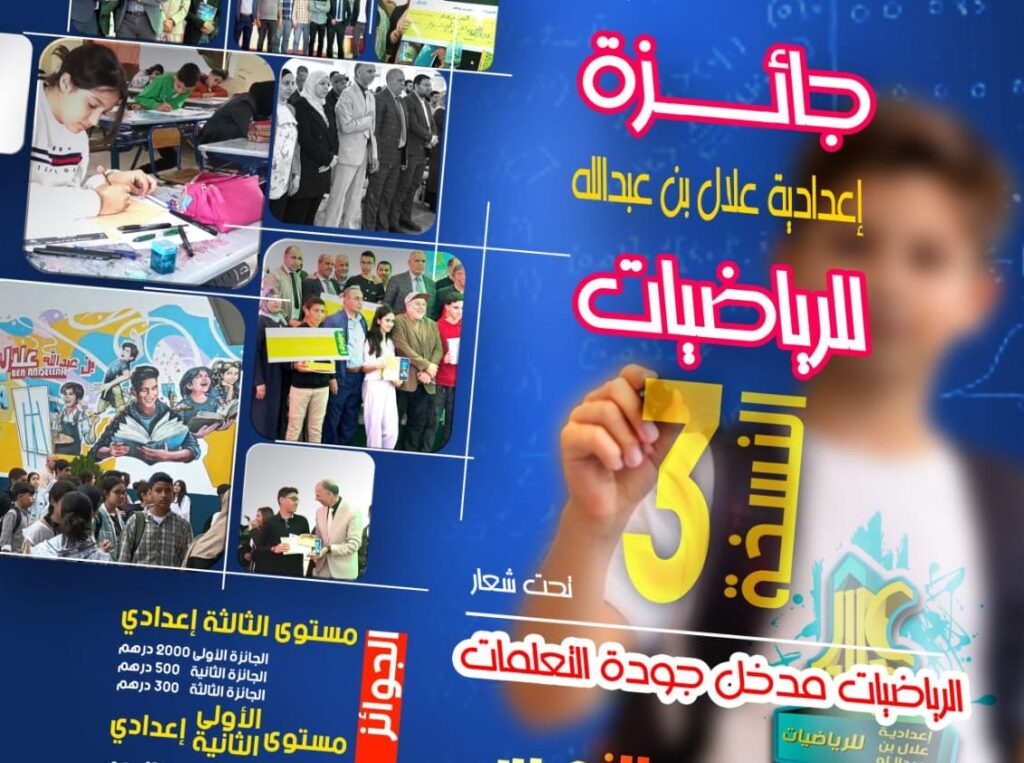 أعلنت إعدادية علال بن عبد الله بالعرائش عن انطلاق الإقصائيات التمهيدية للنسخة الثالثة من جائزة المؤسسة للرياضيات، وذلك برسم السنة الدراسية 2025-2026، تحت شعار “الرياضيات مدخل جودة التعلمات”.