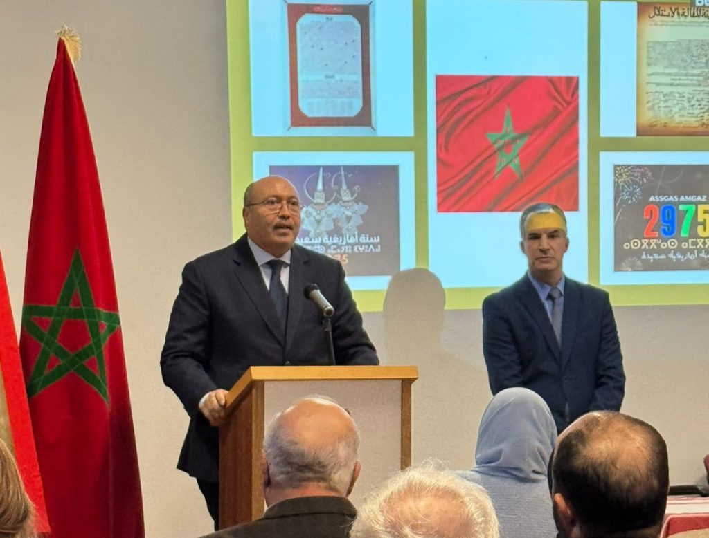 بعد ذلك، ألقى السفير محمد بصري كلمة رحب فيها بالحاضرين، واحتفى بالحدثين الوطنيين: ذكرى تقديم وثيقة الاستقلال وحلول السنة الأمازيغية الجديدة. وأشاد بدور المقاومة المغربية في تحقيق الاستقلال، مستحضرًا نداء جلالة الملك الراحل محمد الخامس للمشاركة في المعارك ضد النازية سنة 1939، وأبرز دور الجالية المغربية في المساهمة في تنمية المملكة. كما تطرق إلى جهود التنمية التي تشهدها المناطق الأمازيغية بالمغرب.