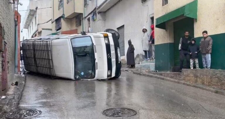 ويتعلق الأمر بعربة نفعية (فلاحية) “بيكاب”، من نوع “ISUZI”،  رمادية اللون (لون الدرهم)، واقيتها الزجاجية الأمامية مهشمة جزئيا، من الجهة العليا، المقابلة للمقود.