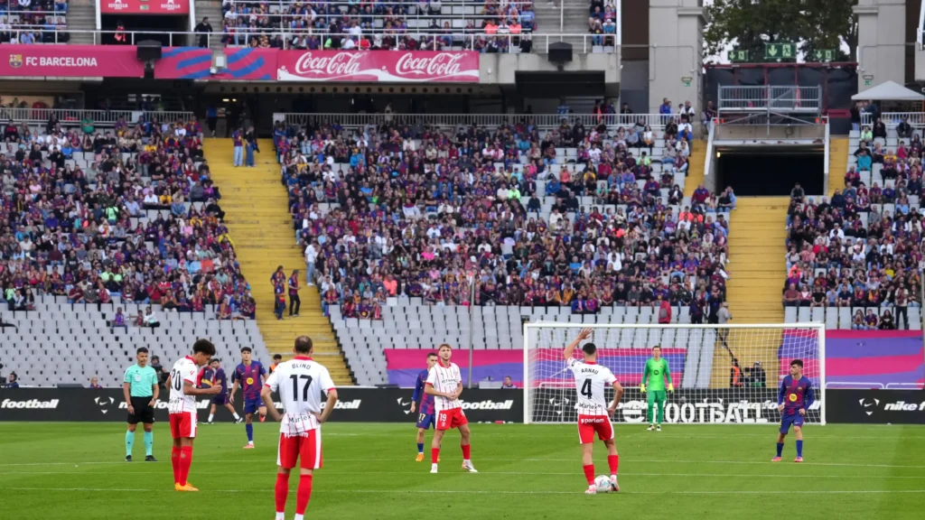 مع صافرة البداية، أطلق لاعب من جيرونا الكرة من نقطة وسط الملعب، لكن زميله لم يتحرك، وبقي جميع لاعبي الفريقين واقفين لمدة نحو 15 ثانية دون محاولات لافتكاك الكرة أو الشروع في الهجوم، في موقف رمزي يعكس رفضهم لنقل بعض مباريات الدوري خارج إسبانيا.