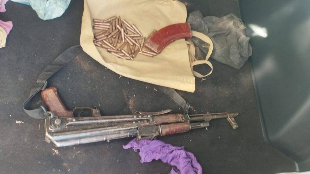 وبعد مغادرة السيارة المكان، قرر الشاب التوجه إلى الموقع لاستجلاء حقيقة الأمر، حيث قام باستخراج الكيس المدفون، ليتفاجأ بوجود سلاح رشاش من نوع “كلاشينكوف” وعدد من الخراطيش بداخله.
