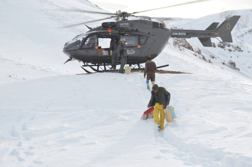 باشرت سرية الدرك الملكي بإقليم ميدلت، بتنسيق مع السلطات المحلية، عملية إنقاذ جوي استعجالية لفك العزلة عن عائلات رحل علقت وسط الثلوج الكثيفة.