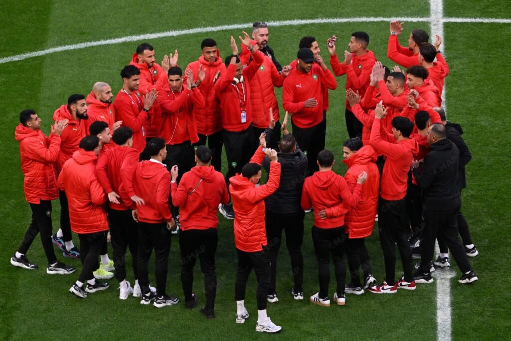 وصدحت المدرجات بهتافات الآلاف من المشجعين، الذين ملأوا جنبات الملعب قبل ساعات من انطلاق المواجهة، في مشهد يعكس حجم الدعم الجماهيري الكبير الذي يحظى به “أسود الأطلس”.