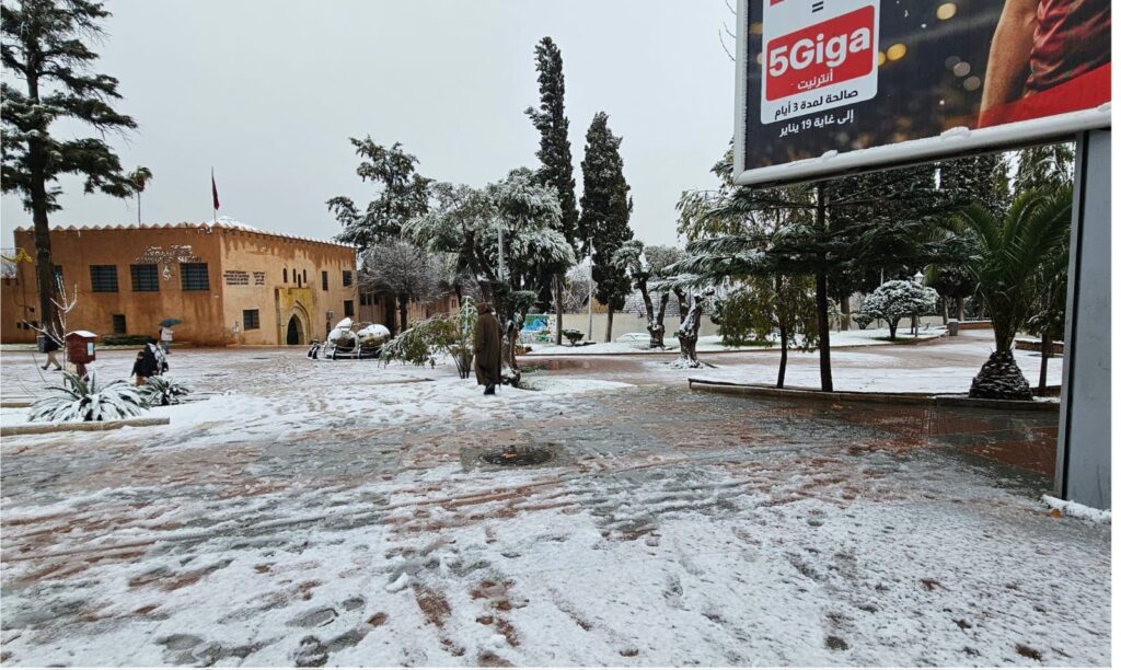 شهدت مدينة صفرو صباح اليوم السبت، تساقطات ثلجية هي الأولى من نوعها منذ الثمانينات، مما أدى إلى تغطية الشوارع والأزقة بالثلوج.