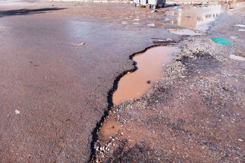 وفقًا لشكاوى المواطنين، تنتشر الحفر والتشققات وتآكل جنبات الطرق، مما يجعل الدخول إلى المدينة أو الخروج منها بمثابة مغامرة، خاصة في أوقات الذروة والأيام الممطرة.