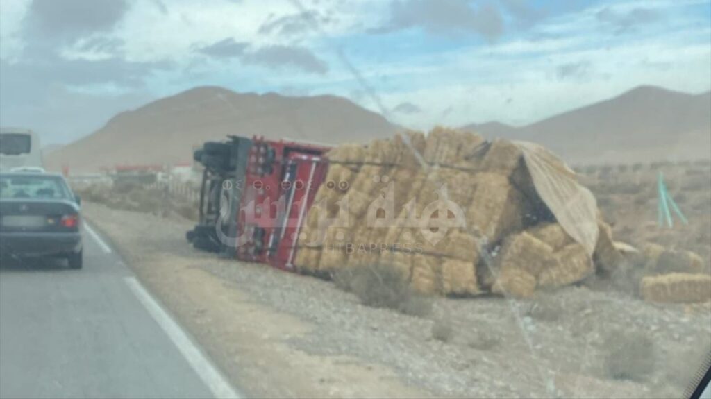 تسببت عاصفة ترابية قوية في انقلاب شاحنة محملة بالتبن على الطريق الوطنية رقم 15 الرابطة بين مدينتي جرسيف وصاكة، صباح اليوم الأربعاء. ولم تُسجل أية إصابات أو خسائر في الأرواح، وفق المعطيات الأولية.